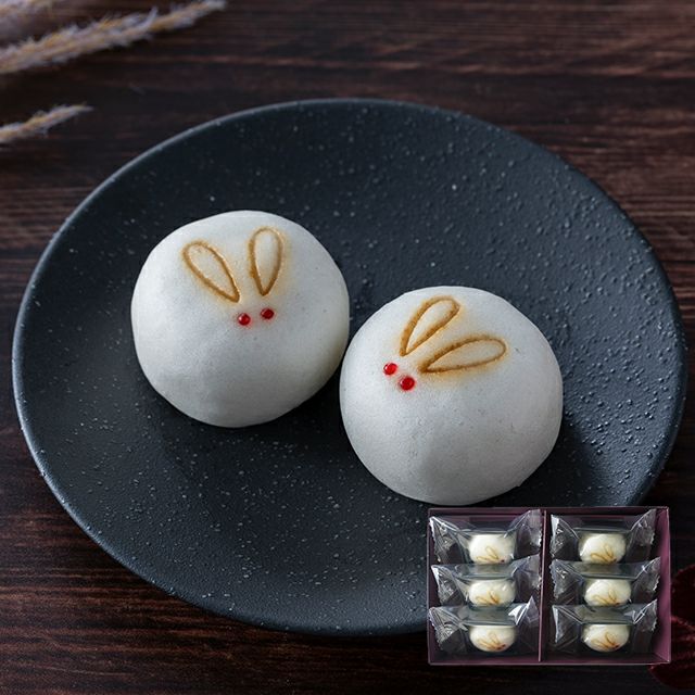 満月のようにふっくらと丸みを帯びたうさぎ形の万頭です。