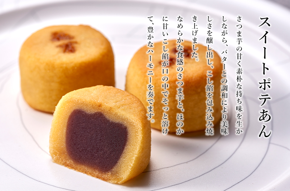 さつま芋の甘く素朴な持ち味を生かしながら、バターとの調和により美味しさを醸し出し、こし餡を包み込み焼き上げました。