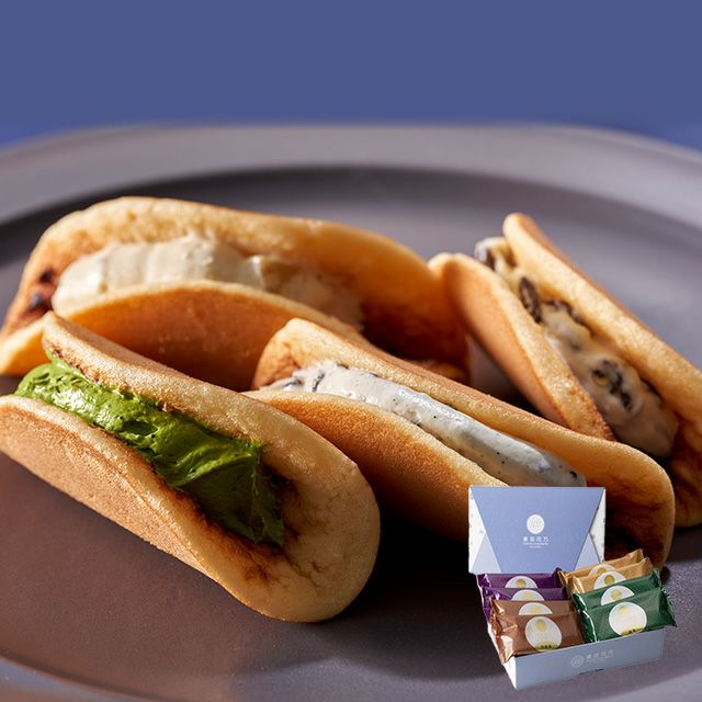 しっとりモチモチのどら焼き生地に、バタークリームと相性の良いフレーバーを掛け合わせた新感覚のどら焼きです。