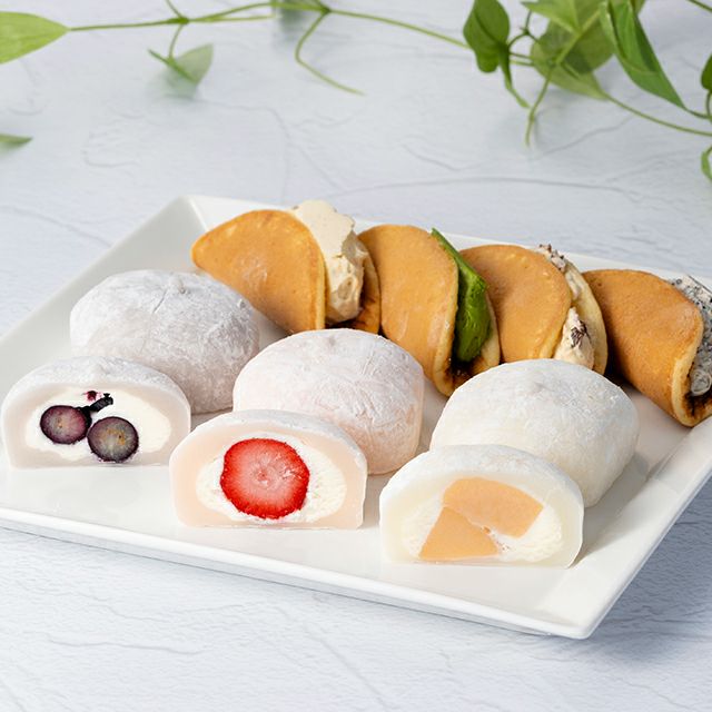 今回は、和菓子界の伝統スイーツ大福とどら焼きに、洋菓子の良さを取り入れた「銀座フルーツ大福」「東京花万どらバターサンド」の詰め合せをご用意しました。